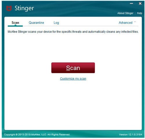 McAfee Stinger提供了三种扫描模式-快速,完整和自定义。