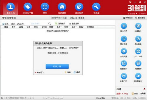 31会议签到电脑版是一款很不错的办公软件,在这款31会议签到软件中最主要的功能就是电子签到功能了,当我们在使用这款软件的时候可以去帮助活动或会议组织者,导入名单,提高签到效率,快速匹配,及时通知,然后利用数据来进行自动化的管理,使得我们的管理更加简单方便,让用户可以更加轻松的去举办一场活动或者是会议等等,在软件中包含了参加人员管理、发送电子票、 发送短信通知、扫描签到、查看报表等诸多功能。
