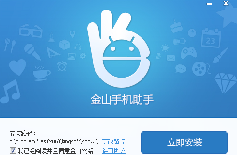 1、在本站将金山手机助手下载下来,并解压到当前文件夹中,点击其中的shoujikong_setup.exe应用程序,进入安装向导界面。