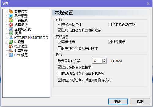 2、在选项设置当中,有常规设置、界面设置、下载目录、病毒保护等
