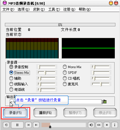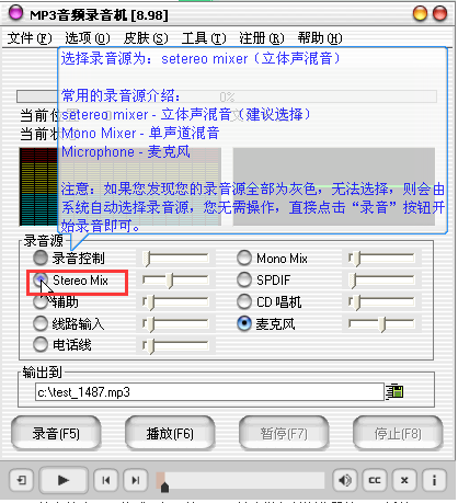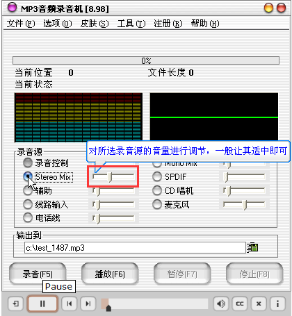 7、热键功能,您可使用热键F5(录音)、F6(播放)、F7(暂停/继续)、F8(停止)来完成录音过程,无需操作鼠标,以避免录音中出现由于鼠标点击而产生的噪音。