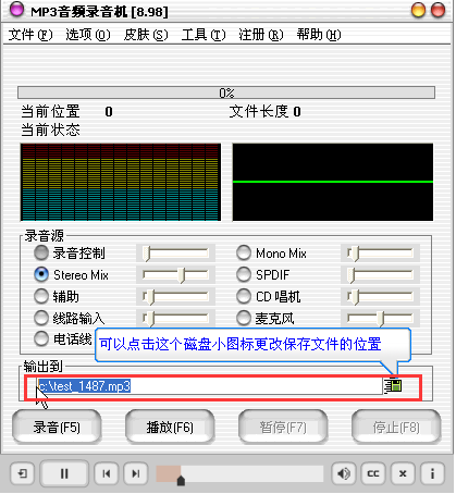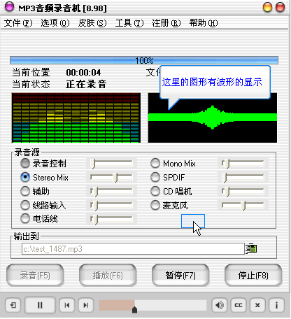 7、热键功能,您可使用热键F5(录音)、F6(播放)、F7(暂停/继续)、F8(停止)来完成录音过程。
