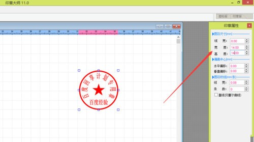 8、印章内五角星的大小。双击图符,把宽度、高度都改为14;