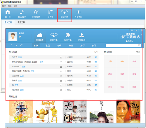 2.联网状态下载:选择歌曲下载,可进行喜欢歌曲下载。可开始使用。