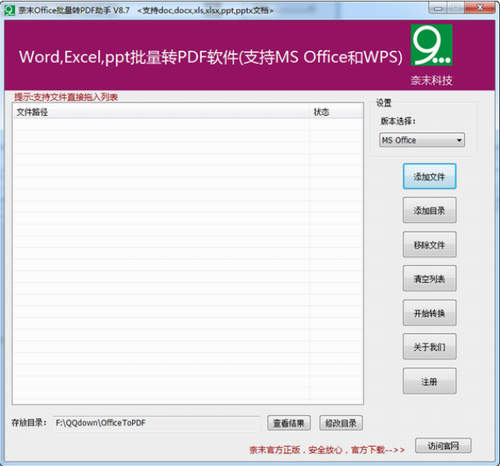 《奈末Office批量转PDF助手绿色版》是一款简单易用的转换工具,旨在帮助用户将Word、Excel、PPT文件转换为PDF文档,其具备了简单直观的用户界面,您可以直接添加要转换的office文件或者添加整个目录文件夹,然后即可在列表中浏览要转换的文件,您接下来只需设置存放目录,然后即可开始进行转换,转换的结果有效的保留原文件的布局、颜色、线条等效果,值得一提的是,该程序支持MS Office、WPS两个版本,满足您的转换需求,有需要的朋友赶紧到本站下载体验吧。