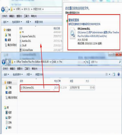 7、打开crack文件夹,选择一个版本文件夹,将Otl.License.DLL复制到安装目录中,点击替换目标中的文件;