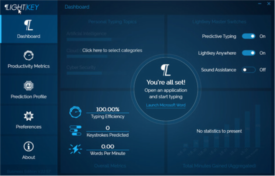 此应用程序可以根据您的键入行为建议单词的潜在补全内容,从而帮助您节省键入时间。这意味着该应用程序将研究您的工作方式并开发配置文件,以便它可以尽可能高效地满足您的需求。启动应用程序时,系统将提示您输入名称,选择键入样式,指定预测语言并从广泛的预测类别和子类别中进行选择。键入样式指示您在键入时是集中在屏幕上还是键盘上。
