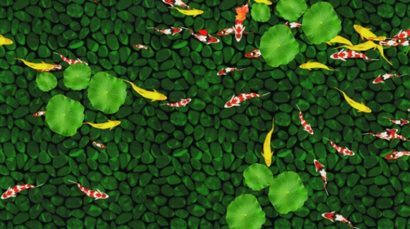 4、动可以生成荷花池鱼群游动的特效,支持自定义背景音乐及背景图。