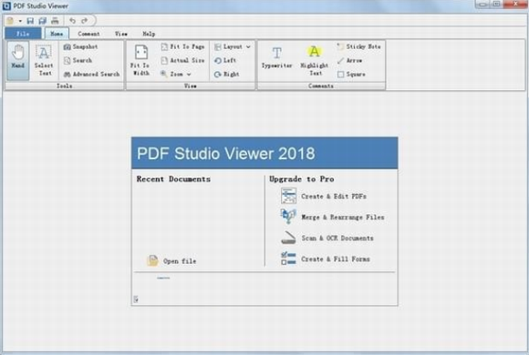 主工具栏还包含一些查看选项,可根据您的喜好调整当前页面的大小。谈到观看模式,PDF Studio Viewer附带一个阅读模式,可以从主窗口中删除令人分心的元素,让您专注于文档的内容。