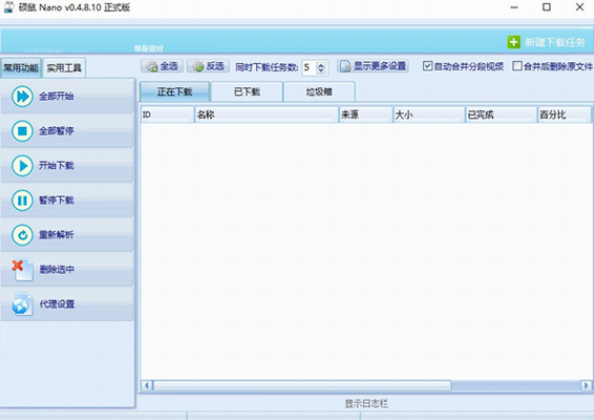 很多视频网站为了防止盗链,都采用了动态地址,也就是说解析后几个小时这个地址就过期了,就会下载失败,硕鼠Nano为您提供了一个重新解析的功能,如果您遇到无法下载的情况,可以先选中失败的任务,点击重新解析按钮。