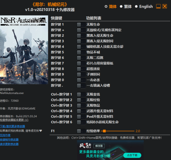 尼尔机械纪元修改器 vv1.0-v20210318 风灵月影版