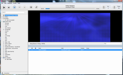 《karafun player官方版》是一款专业的卡拉OK制作工具,这款软件持播放列表、多首歌曲、双屏幕配置和可调节奏,现代和新鲜的设计,可以与任何环境融合,上面的工具栏装有播放选项,提供对播放列表的快速访问和控制,界面的其余部分结构巧妙,包括一个预览部分、一个树视图以及一个详细列表,以便更好地选择曲目,该软件在原来的基础上新增了允许音调和节拍变更以及声音录制功能,支持KAR MIDI文件、MP3文件和KFN文件。