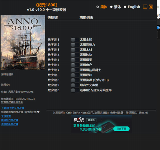 《纪元1800修改器风灵月影版》是一款专为纪元1800Anno 1800游戏专门打造的游戏修改器,这款游戏是一款非常好玩的模拟经营游戏,游戏背景是以19世纪为主的,它将带领玩家回到工业时代初期,真正经历度过主义和殖民主义时代,你在游戏选择哪种方式即决定世界走向,不管是救世主、暴君、新革命者都由玩家自己决定,且在本作中还有很多特色玩法,比如多区域游玩、AI敌人、随机地图、跨洋交易货物、道具等等,游戏里还有一大亮点就是探险玩法,在这个玩法中一切都是未知的,玩家将自己组建探索队,路上会发生什么事情、到达那里等等一切都是未知的,给玩家带来非常刺激的游戏体验。