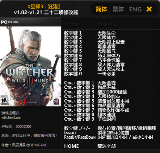 《巫师3修改器风灵月影版》是一款包含非常强大且丰富的修改功能,可以让你任意修改自己身上的各种数值,包含生命,体力,金钱,材料等,让你轻松体验史诗般的游戏剧情,玩家将在游戏中扮演职业猎魔人白狼,在狂猎中寻找预言之子,在石之心中对抗一个残暴的土匪头子,在血与酒美丽的陶森特地区揭开恐怖血腥的秘密,简单的来说,这个游戏不可避免的在一些方面还是有瑕丝的,但是这个游戏的优点完完全全的掩盖了缺点,音乐,对话,细节方面都无可挑剔,尤其人物的塑造以及备受好评的代入感到了登峰造极的地步。