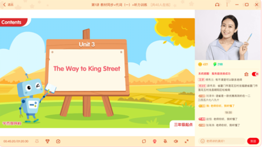 在线课堂实现全语音互动,让老师能听见每个学生的回答,表情识别系统,能捕捉每一个表情的变化,让老师“看见”每个孩子,课堂内容可无限次回放,听懂为止。