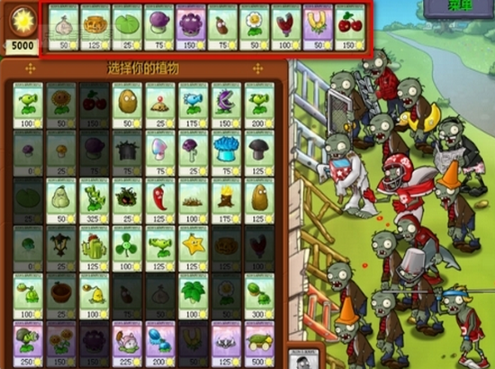 1、食人花和墙果能够一起发挥最大的效用,并且建议种两排向日葵。