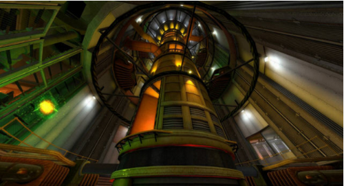 5、从机枪后面上楼,在某个柱子上找到控制器打开后下楼,这时关上的大门已经打开,进去是个导弹发射架,这里每层都有按钮可按,都按了后上梯子。