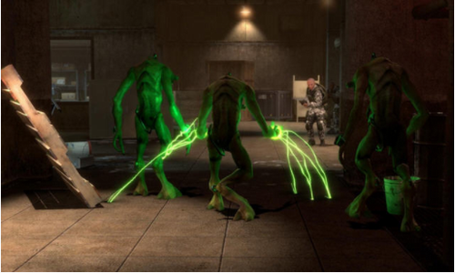 4、到头后进门,一路上会出现外星人,不要打,让他们和特种部队打,一路杀到有可控制的机枪出,拿到机枪后,来的地方会冲出一群特种部队,用机枪杀死。