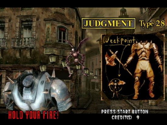 G给了你一本小书,这就是你克敌制胜的法宝了,它上面记有所有BOSS的弱点(Emperor除外)。有两点需要说明,一是枪。HOD2中的枪无论是1P还是2P都不能自动上子弹,但是上子弹是不会像HOD3中那样消耗时间的。因此要勤上子弹,反正有AMS替你支付弹药费。二是市民。HOD2中的路线分支很多,哪个人死哪个人没有死都会影响到你的路线。市民你就要尽量去救了,因为在每关的结束后会根据你救的人数来决定是否给你加命。有时市民被救后会直接给你“送命”的。好了,接着说剧情。你顺着一个胡同走,救下了一个给你“送命”的女士之后(不救也行,让她的心哭泣去吧~~~),你会来到一个废墟般的广场,两辆已经损坏的车挡在了前面。这时,讨厌的Zeal带着一阵奸笑飞到了你的面前。