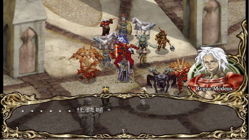和前面的战斗一样,敌人是分批冲锋的,而且呈半包围形态,注意收拢队形,上方敌人较少,先杀光,然后全军向下。幼龙的攻击力比较强,如果队员等级较低,需要好好利用小妖精的“Sleeping”技能,下面的宝箱可派移动力较高的小恶魔和小妖精去。欧兰多8级时学会技能迅刀.月下。