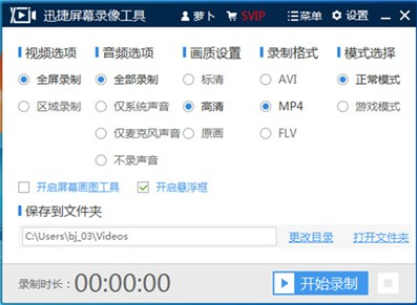 迅捷屏幕录相对象录制的视频格局可分为两种,一种是AVI格局,另一种是MP4格局,两种格局随便抉择。