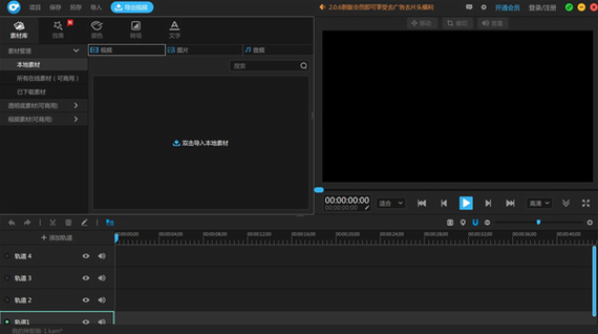 2、素材库:素材库是用作存放素材的地方,素材库所支持存放的素材有视频、音频、图片和粗剪后的视频音频素材,但要注意的是只有把素材库的素材拖拽到时间轴上才能进行剪辑