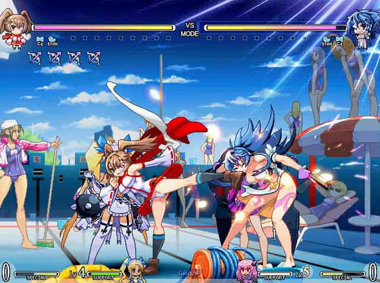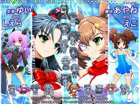 可使用的角色和Boss全部都是女性,游戏共有10位普通角色,并可以在4个援护中选择1个同时操作。