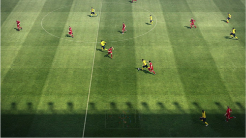 禁区两侧的攻门球员会冲顶,离球门较远时,攻门球员会追着球跑然后头球攻门。