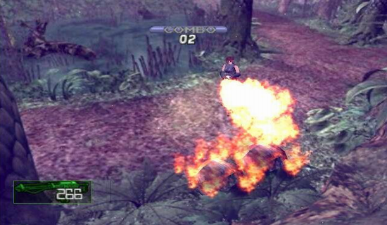 另外值的说一下的话,在游戏当中,武器的子弹数目是有限制的,所以在这一点上大家可要节省点呀,不要到了关键时候的话,只能用小刀杀恐龙呀,不过如果你有一定的把握的话,也不妨试试。在游戏中,玩者除了要有敏锐的反应之外,亦要留意周围的环境,因为有时候恐龙会从天花板而降的,玩者有时亦会察觉到在墙壁上会有电掣,有时玩者只按下电掣便能开动电闸把恐龙闭锁着,当攻击天花板上的一些喉管便会放出蒸汽,搅乱敌人的视线……,所以这不只是杀敌这般简单,而是一只斗智斗力的冒险游戏,给玩者一个SURVIVAL HORROR的旅程。