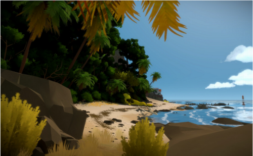 (5).“我”的出现是从一个封闭的洞里,“苏醒”,实际上是通过远程操控,“我”的智能或电源被开启。我们玩家和角色一样,都是对世界一无所知。然后被美景所吸引,从谜题中学习规则,对自己的来由感到好奇,对这个岛隐藏的秘密感到好奇。