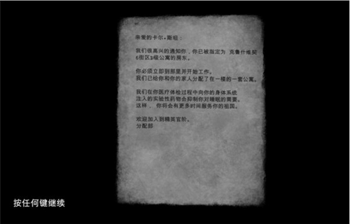 你的主要任务是偷偷摸摸监视你的组合并偷听他们的对话。你必须在他们不在的时候对他们的公寓走手脚,搜索所有会威胁到政府权威的个人物品,并向你的上级汇报。你必须还要向当局报告每个会违法或密谋颠覆政府的任何人。