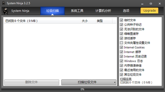 《System Ninja破解版》是一款轻巧实用的系统优化工具,这款软件功能丰富,除了垃圾清理,还具备开机启动管理、查看目前程序时候有恶意软件等功能,但是要清理软件残留的垃圾,必须要搭配CC第三方设定,而且它的设计理念为快速清除垃圾文件,改善系统性能和帮助解决问题,在您感觉到系统运行缓慢,或者很多软件打不开始,可以用该软件清理垃圾文件从而提高系统的速度,让你的电脑流畅高速的运行,带来前所未有的完美体验。