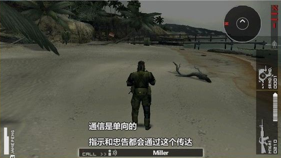 近身默认格斗武器——防狼电击棒一只,上作ops很遗憾BOSS手里那把匕首万年是装饰品。电击棒同MGS4中电击匕首作用类似,通过放电来击晕敌人,放电结束会有个在充填的过程(请注意:如果电放完了就必须等电完全充满才能再次使用,没放完的话即使没充满也能再用)。