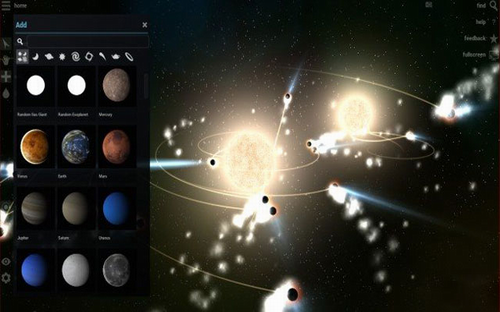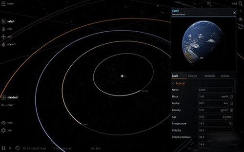 在这里可以添加行星,恒星,卫星,星系,黑洞,日常物体,航天器等。你可以点击你想要添加的物体,然后把它放在这个空间中,理论上,这个空间中可以放置的物体数量是无限的