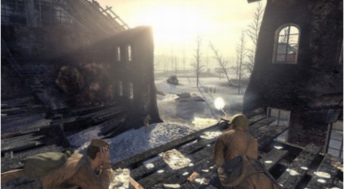4、游戏画面(7.5分):TWI关卡设计师称,他们的目标是一比一还原战场实景,为此他跑到慕尼黑和柏林国会大厦拍了几千张照片,当然还有曾被反复提及的斯市城郊废弃谷仓,TWI游戏设计师是首批获准进入该建筑内部进行观摩的西方游客。从这可以看出该游戏对画面真实性的设计是非常用心的,而整体画面表现也从以前的UE2引擎升级至UE3引擎,整体表现来看画面一般。