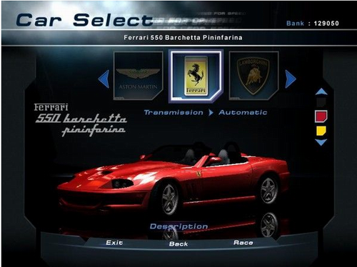 依照以往EA的风格,可选车辆也全部都是欧洲车,不过加入了几辆豪华轿跑车,为游戏增色不少。下面为大家介绍游戏的每一类车。因为这代作品并没有明确把车子分成三六九等体现在游戏中(在程序里分了,详见“程序修改秘籍”),根据游戏里的参数,本人将车分为五级。
