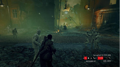 6、游戏中的敌人有不死超级士兵,重装骷髅士兵,僵尸狙击手,电锯精英,火焰恶魔等等,最终等待玩家的是大魔王希特勒自己