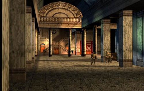 进入金库,左右竟然近距离各站着一个家伙(真是幽默),然后又是几个鬼子带着一群浪人,这里敌人都离得近,所以不能犹豫,枪枪点杀,左边圆门后面还有一个,右边也有三个。最后小BOSS,关键是救出人质,不然鬼子和浪人会不断出来,把准心放在屏幕正中到偏上一些之间,基本上可以保证枪枪爆头。人质救出后鬼子竟然还没死,说装了炸弹,一枪爆头吧。