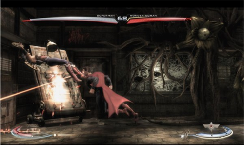 2.游戏采用了原创的故事,讲述超人因为小丑杀死了他的爱人露易丝和她腹中的孩子而性情大变,集结了一群认同他理念的英雄对地球开始了独裁恐怖统治,而蝙蝠侠与其他反对超人的英雄暗中对抗强权的故事。