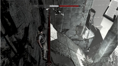 灰蒙蒙的大地,空气中到处都是该死的尘埃,整洁的城市看起来简直一塌糊涂,游戏画面给人带来的感觉就是压抑与低落。在游戏中很多时间我都觉得我在黑白电视上玩游戏,这个游戏都看不见颜色,但是要是说没有颜色是瞎扯,游戏中还是有颜色的,但是绝大多的颜色都是黑色灰色和白色,整个人一直处于梦境中,可能游戏的创作人员向给与玩家强烈心理暗示,游戏流程中本身就需要大量的攀爬和解谜技巧,都要在这样的色调下克服种种困难几乎绝望的去完成任务。