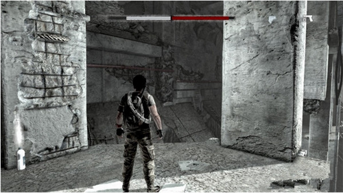 不像别的AVG游戏那样,拥有各种飞檐走壁、纷繁复杂的动作。在《我还活着》中,只需要掌握上下左右、跳跃、下落即可,无时无刻不在震后的城市中攀爬。子弹少的可怜,很少有机会开枪,很多时候都需要靠刀解决问题,糟糕的动作判定导致的直接结果就是我们需要用拼命的敲击RT键来捅死对方,当然,RT键的用处不仅仅在这里,动作,攀爬,都少不了它,可以说一个RT键可以解决游戏中的一切动作。