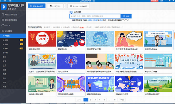 大量的简洁大方的动画模板,涵盖多个主题内容,轻松下载并替换模板内容便可快速制作出酷炫的动画宣传视频、微课视频等。