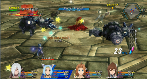 新的特殊攻击会随着小队成员的等级提升而解锁,比如远程攻击、近程攻击或者范围攻击都会被执行。环节组合能够通过将特殊攻击连起来使用而被执行。Symbology或Heraldry允许角色消耗符号,这将会根据使用者的类型而消耗更多的MP值;例如,近程面向打击会消耗更多的MP而不是魔法消耗固定的MP。符号变化的时间根据用户统计,环节组合也会符号结合而创建多个符号攻击组合。