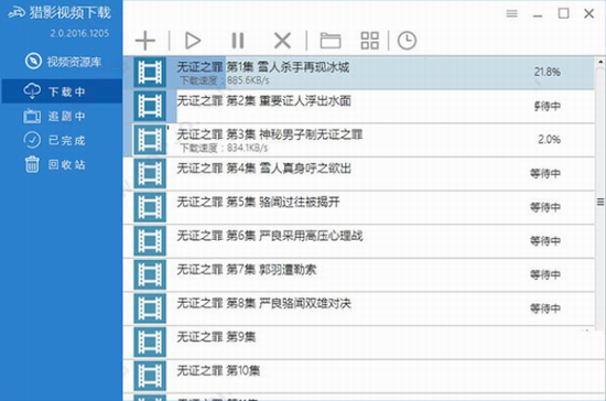 3、只搜你想要的,剧集批量下载,精准分析剧集关系,撕掉视频地址的伪装面具,支持全集批量下载,精美交互界面,不光功能强劲,更是颜值担当,猎影就是要给你好看。