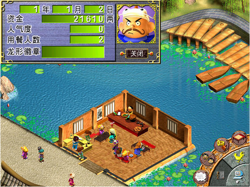 2.游戏画面,是采用最佳的斜像45度视角,所以客栈内的一举一动,例如客人吃饭的样子、厨师煮菜的样子、掌柜专心算帐的样子、小二收拾餐具的样子、员工偷懒的样子,全都可以让您看的一清二楚,而且所有登场角色、建筑设施、摆设对象,全都是采用3D模型精雕细琢建构而成,因此在游戏画面方面上,所呈现出来的精致之美,绝对会令您耳目一新。
