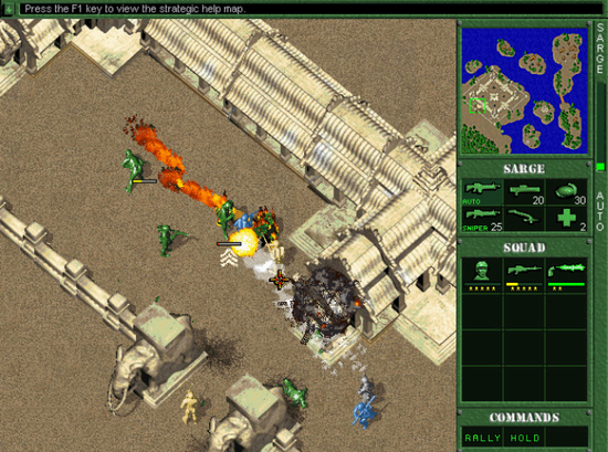 玩具兵大战2完美版游戏支持3Dfx,其3D效果十分不错,所有单元都采用3D MAX 做框架,然后进行着色的材质处理。游戏的过场动画十分精采,其音效是制作小组到美军演习中录制的,自然十分逼真,敌方的人工智能比较差,因此人数稍多一些,在战斗中搜寻敌人的藏身之处是很重要的组成部分,是一款以塑料玩具为主角的战略游戏,游戏要求控制一支活动的塑料人队伍,进行三大战役,执行30多项不同的任务。武器种类不少,有机关枪、火焰喷射器、火箭炮等,具有赏心悦目的烟火效果。战场上不仅有战士,还有坦克、半履带车和吉普车。在战役中要跨越沙漠、高山和海湾,进行一系列战斗。
