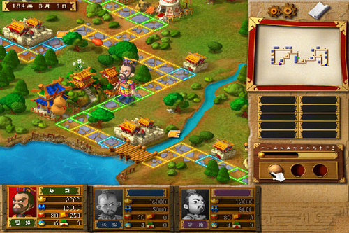 在游戏操作方面,区别于一般的大富翁,富甲天下3中占领城池并非致胜的唯一手段,当实力不足时,多占城池反而分散了力量,让敌人得以个个击破,所以经营手中现有的城池才是上上之选,只要经营得当,城池中的人口、税收、特产品会随之增加,城池规模也会扩大,对手走到该城的机率可就大大的增加了,若是占领一州之内所有城池,不仅可以向对手收取过路费,境内的店家还会按时来缴纳税款,这就是富甲天下的州的观念;当玩家刚开始实力不足时,可以选择先发财致富,再招兵买马攻城略地。在富甲天下3中,每一座城池都有所谓的特产品,像矿石、织物、调味品、珍宝等,玩家可以行倒卖特产,不过有些商品像是食物,水果等都是有保质期的,要在保质期之内贩卖哦(考虑的真周全啊)。