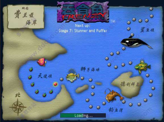 第二关(Feeding Frenzy 疯狂大餐:奖励关):40秒内猛吃38条小鱼。
