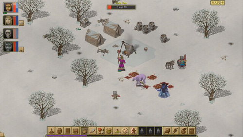 《幻日》采用的北欧风格的游戏界面,在游戏中你可以感受到很强烈的北欧文化,例如带有北欧魔幻色彩的各种种族、还有符合北欧特色厚重盔甲、包括主线剧情也是以北欧的城邦等等做背景。这样可以给玩家一种比较贴近真实的游戏体验,你可以看到身上被怪物箭矢射中之后流血效果,还可以看到被巫师的法术攻击后的魔法元素效果。