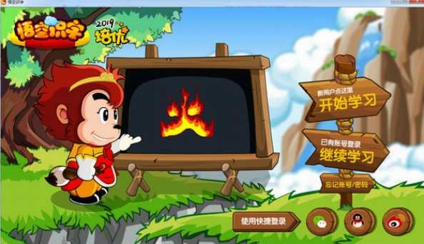 悟空识字每天的学习必须从游戏主地图右下角的“花果山”开始。花果山是学习入口,所有新汉字的学习都是在这里,它会自动带您进入当天的游戏场景进行学习。